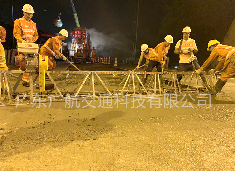 經(jīng)過(guò)廣航交通專業(yè)施工隊(duì)的緊急搶修,在澆筑完成后待混凝土強(qiáng)度達(dá)到通車要求時(shí)開放交通,出色的完成了廣惠高速羅峰隧道路段的大面積攤鋪緊急搶修工程。